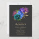 Watercolor floral mardi gras quinceanera photo invitation in accents of purple, turquoise and gold designed to be quickly and easily customised to your event specifics.