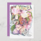 An elegant watercolor in pastel colours with flowers in shades of pink and purple and long greenish foliage. Among these are lovely music agendas with music notes and on the background a clay pot .