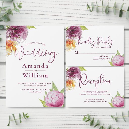 Elegant Watercolor Floral Wedding design. If you wish to change fonts please click customise further. Please visit my store for more matching products.