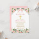 Watercolor Floral Pink Bow Gold Baptism Invitation