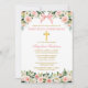 Elegant Watercolor Pink White Floral First Holy Communion Invitation includes pink roses, white flowers and greenery. Gold Cross. Pink Blush Bow Ribbon.
