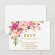 Watercolor Floral Pink Gold RSVP Wedding Card