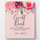 A plaque with an attached easel is printed with Guest Book sign in or any other wedding info you need. A pink lemonade base colour, but you can CHANGE the BACKGROUND COLOR to anything! Shades of pale pink, cerise pink, fuchsia pink to marsala pink watercolor floral design at the top and a white double border - REMOVE it or CHANGE the colour! MATCHING items in our collection.