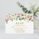 Watercolor Floral Pink White Gold RSVP Wedding Card