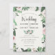 Watercolor Floral Pink White Green Wedding Card