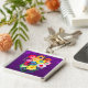 Watercolor abstract fine art. Colourful rainbow floral lolly flower tree. Fun design. Purple background.