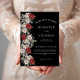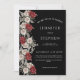 An elegant watercolor wedding invitation featuring a border down the left side with red and white roses and eucalyptus greenery on a black background. Please personalise with the details of your special day.