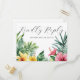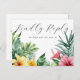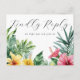 An elegant watercolor tropical flowers and greenery RSVP card with elegant typography. The reverse features your details and a fun guest song request. Designed by Thisisnotme©