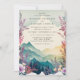 The overall effect is one of whimsical romance, with the watercolor floral design adding a touch of enchantment to the mountain landscape. This invitation is perfect for a spring wedding, or any wedding that celebrates the beauty of nature and the joys of love.