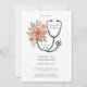 Watercolor Floral Stethoscope Nurse Graduation Invitation
