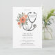 A cute whimsical illustrated floral stethoscope for a graduating nurse party invitation. Whimsical, with a touch of elegance. Stethoscope on the back of the card with space within the stethoscope to customize with your graduating class year. Cute boho style florals. Available in print, as a digital download, or both!