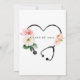 A modern unique and elegant watercolor pink white floral stethoscope in a heart shape, for a graduating nurse party invitation, with script and serif typography. Modern with a touch of elegance. Heart shaped floral stethoscope on the back of the invite with class of 2022 in the middle. See the full collection of matching products for this design at: https://www.zazzle.com/collections/nurse_graduation_floral_stethoscope-119556213467602116