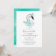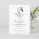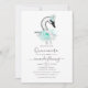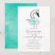 Elegant swan themed quinceanera invitations with pastel shades of mint and aqua blue with silver glitter.