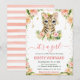 Watercolor Floral Tiger Cub Girl Baby Shower Invitation