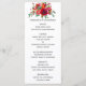 Watercolor floral wedding menu featuring red, purple, pink and burgundy roses and peonies.