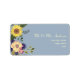 Rustic, elegant, floral, botanical, modern boho dusty blue return address label, with watercolor flowers and trendy calligraphy script.