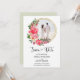 A wreath of gold glitter rings, elegant peonies and garden flowers in shades of pink and cream features our favourite photo** and your wedding save the date wording in chic lettering. Back of the invitation is sage green or any colour you choose (use our design tools to change.) If you like thicker paper, use the Matte paper or for a shimmery look, the Pearl Shimmer paper. MATCHING items in our store. **TIP: Resize your photo to a square before uploading for easy placement.