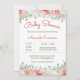 These baby shower invitations feature watercolor flowers. The back of the invitations have a matching floral pattern.