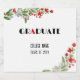 Here is a sophisticated graduation sparkling wine label design in black, white, and red. The aesthetic incorporates an Art Deco influence complemented by delicate watercolor wildflower illustrations. A clean white background highlights the modern, minimalist black and red typography, ensuring key information is readily visible. The design is also easily customisable.