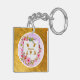 Watercolor Flower Gold Frame | Custom Name Key Ring
