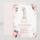 This first birthday invitation with watercolor butterflies, flowers, and pink stripes is perfect for your little wild one!