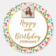 Watercolor Flowers, Custom Photo, Happy Birthday Classic Round Sticker