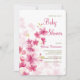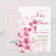 A beautiful, floral, baby shower invitation with a white background and flowers in hues of pink. (<a href='https://www.freepik.com/free-vector/baby-shower-invitation-with-flowers-in-watercolor-style_1892966.htm'>Designed by Freepik</a>). <br/><br/>The card is easy to customise with your wording, font, font colour and choice of six paper types.<br/><br/>Not exactly what you're looking for? All our products can be custom designed to meet your needs at no extra charge.<br/><br/>Simply contact us at askcottonlamb@gmail.com<br/><br/>Coordinating products available: