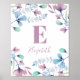 Watercolor flowers monogram. Baby girl. Nursery Poster