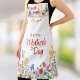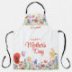 The apron features a lovely array of watercolor flowers that border the design, creating a natural and delicate frame. These floral elements include a variety of springtime blossoms such as daisies and wildflowers,