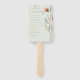 Watercolor red flowers with sage green leaves on a custom pale green background, hand fan customisable text.