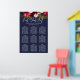 WATERCOLOR FLOWERS, BLUSH PINK, BURGUNDY AND NAVY SEATING CHART. DIY background color.