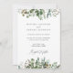 Our beautiful watercolor botanical foliage design is the backdrop for your wedding details on this great announcement card. The muted tones of the green leaf foliage give a timeless classic feel to the design which would be fitting for a wedding in any season. With elegant font for your details.