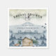 Bridal shower paper napkins featuring watercolor mountains, forest, cabin, fox, owl and birds to celebrate the bride.