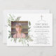 Trendy wild woodland forest first communion invitation cards designed to be quickly and easily customised to your specifics. A square shaped photo is recommended.