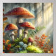Watercolor Forest Mushrooms Foliage Fungi Art Poster