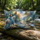 Watercolor Forest River Horsewoman Dreamscape Lumbar Cushion