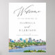 This wedding welcome sign features a watercolor painting of the beautiful Fort Lauderdale, Florida skyline. This welcome poster makes the perfect addition to your Fort Worth wedding or any other special event.