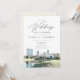 This wedding reception invitation features a watercolor painting of the Fort Worth, Texas skyline and an elegant handwritten font. Easily edit most wording to match your event