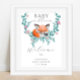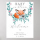 Baby in bloom Woodland Fox Floral Baby Shower. Personalise this woodland fox baby shower. Watercolor baby fox sleeping on floral and greenery leaves. Baby in Bloom.