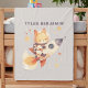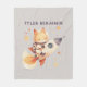 This charming fleece blanket features a whimsical watercolor fox soaring on a colorful space rocket. Perfect for adding a touch of fun and imagination to any nursery or kid's room, this soft and cozy blanket is sure to become a favorite. Its unique design makes it a delightful gift for babies, toddlers, and kids who love space, animals, and art.