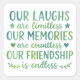 friendship quote, watercolor friendship art, best friend gift, inspirational quote design, our laughs are limitless quote, watercolor typography, positive affirmation art, watercolor lettering, meaningful friendship gift, friendship wall art, watercolor saying, hand lettered friendship print, friendship gift idea, our memories are countless, watercolor calligraphy quote, friendship design for mugs, watercolor art for shirts, watercolor inspirational art, friendship quote t-shirt design, watercolor gift for her, best friend birthday gift, watercolor wall decor, watercolor motivational print, watercolor art quote, watercolor friend saying, friendship watercolor design, watercolor positive quote, watercolor hand lettering art, friendship quote watercolor print, watercolor artwork for gifts
