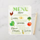 Customise this party Menu with your own menu items. It's a fun and rustic menu featuring watercolor fruits and veggies and a handwritten style font. Perfect for casual occasions!