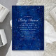 Watercolor Galaxy Cosmic Stars Starry Baby Shower Invitation. This design features twinkling star lights in space against a nebula starry sky of a celestial navy blue universe. Personalise this custom design with your own text and event details.