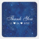 Watercolor Galaxy Cosmic Stars Starry Wedding Thank You Square Sticker. This design features twinkling star lights in space against a nebula starry sky of a celestial navy blue universe. Personalise this custom design with your own text and event details.