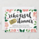 This pretty, rustic chic rehearsal dinner invite features beautiful watercolor flowers, lovely brush script calligraphy, and a faux gold foil tag that uniquely displays the bride and groom's names.