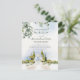 This invitation features soft botanical greenery cascading from above and a hand-painted garden pavilion scene below, complete with ceremony chairs and floral details — capturing the charm of an estate or vineyard wedding setting. The delicate script typography paired with timeless serif fonts creates a balanced, classic look that feels both sophisticated and inviting.