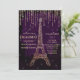 This elegant and modern wedding engagement party invitation is perfect for the stylish and trendy couple. It depicts a glamourous faux gold glitter Paris Eiffel tower on a violet purple and wine-coloured watercolor scenery background with bright shiny glam stars and glimmering glitter strands. On the back is fancy popular glitter Paris Eiffel tower on trendy purple watercolor with stars. It's minimal, contemporary, chic, artsy, and pretty!