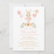 This design is part of the "Ballerina" baby shower collection. It features cute stationery with watercolor rabbits dressed as ballerinas. The main invitations of the collection have the funny pun "We are Tutu Excited".