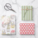 Celebrate the holidays with these modern Gnome Christmas Holiday gift wrap sheets! Featuring charming watercolor images of a four Gnomes, with the other sheets in green with white stripes and pinkish red with white spots.