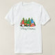 Merry Christmas Colourful Fun Watercolor Gnomes with Christmas Presents Holiday T-Shirt with Pine Trees and String Lights.